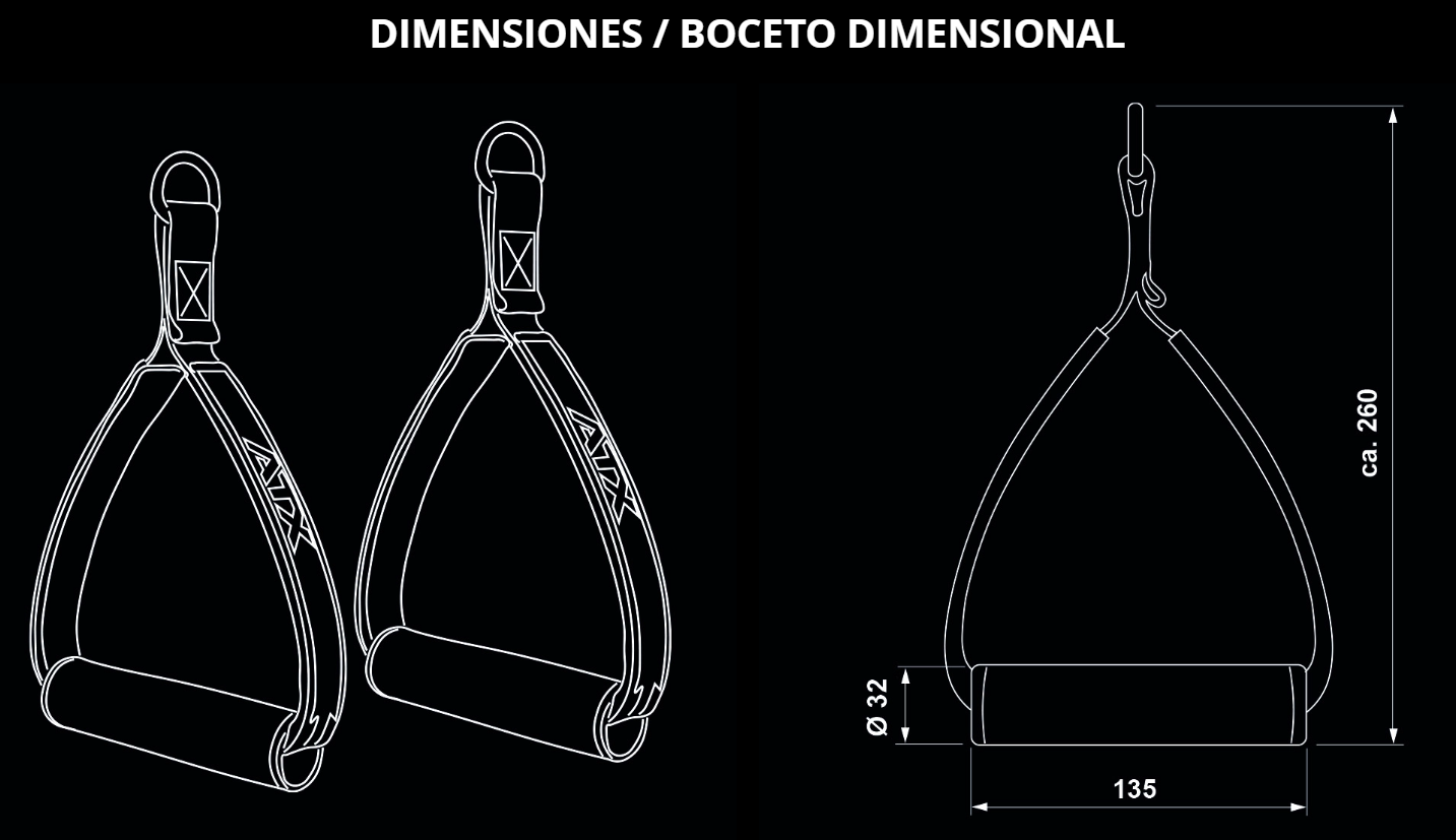 • Capacidad de carga 100 kg / por asa de una mano.