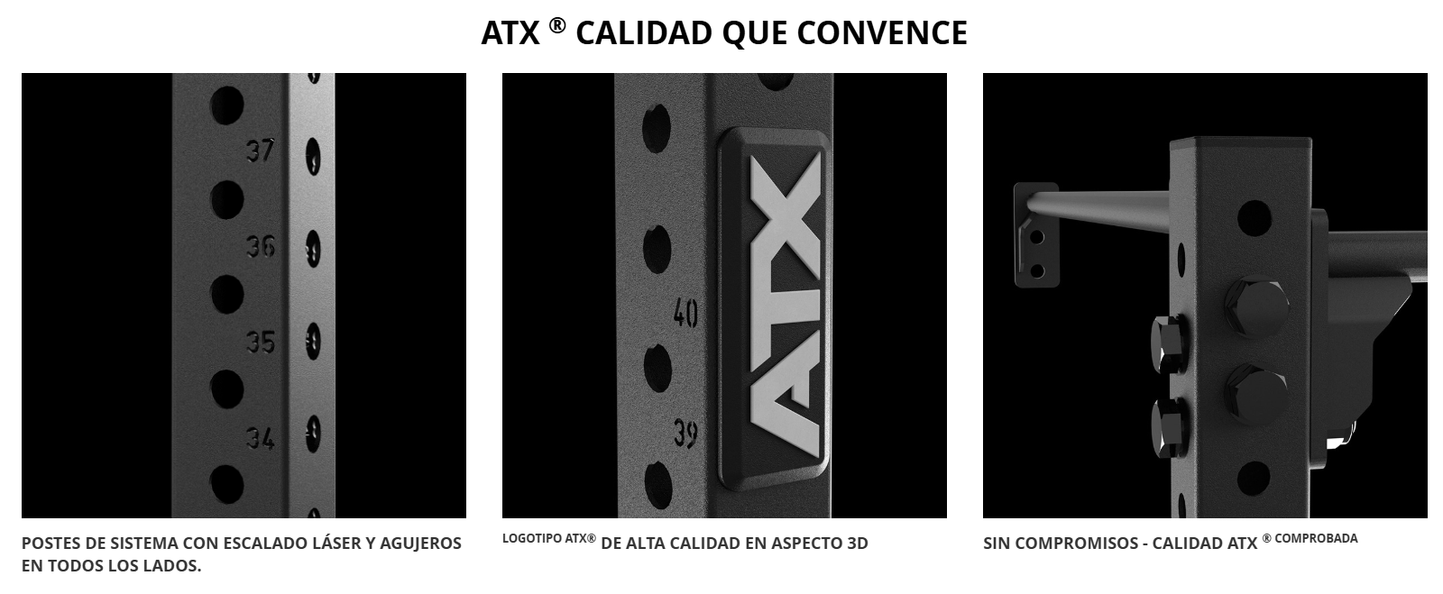 El ATX® WALL RIG Basic 1 se monta en la pared y ofrece máxima estabilidad gracias a sus marcos de base ATX® perforados y sólidas conexiones atornilladas. Requiere atornillarse al suelo. Su construcción de acero de alta calidad con acabado en pintura en polvo garantiza una larga vida útil, incluso con un uso intensivo.