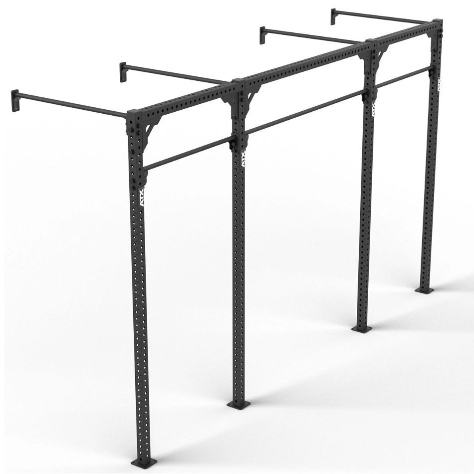 El ATX® WALL RIG Standard 3 se monta en la pared y ofrece máxima estabilidad gracias a sus marcos de base ATX® perforados y sólidas conexiones atornilladas. Requiere atornillarse al suelo. Su construcción de acero de alta calidad con acabado en pintura en polvo garantiza una larga vida útil, incluso con un uso intensivo.