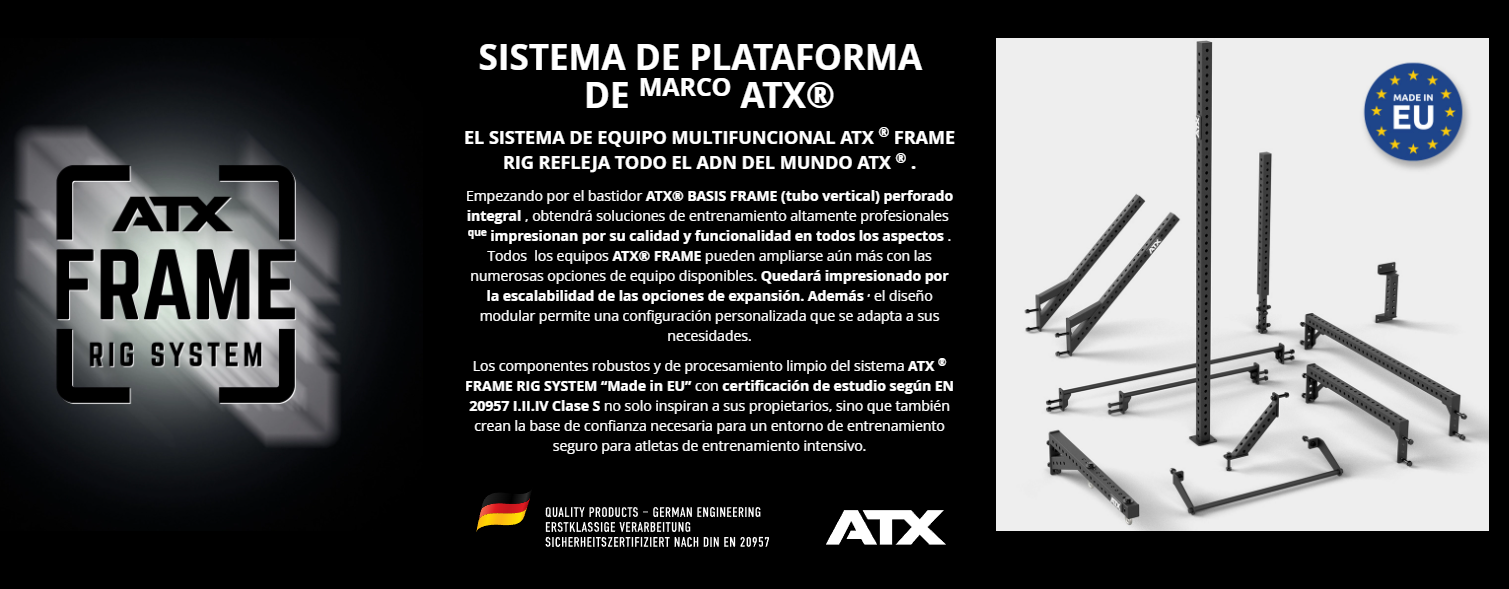 El ATX® WALL RIG Standard 4 se monta en la pared y ofrece máxima estabilidad gracias a sus marcos de base ATX® perforados y sólidas conexiones atornilladas. Requiere atornillarse al suelo. Su construcción de acero de alta calidad con acabado en pintura en polvo garantiza una larga vida útil, incluso con un uso intensivo.