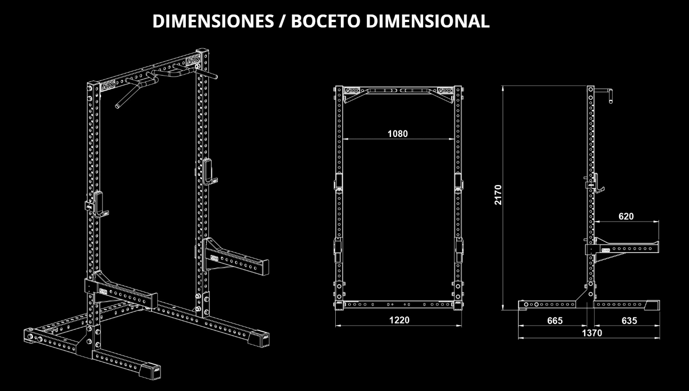 - Soporte ancho para barras: 1080 mm.