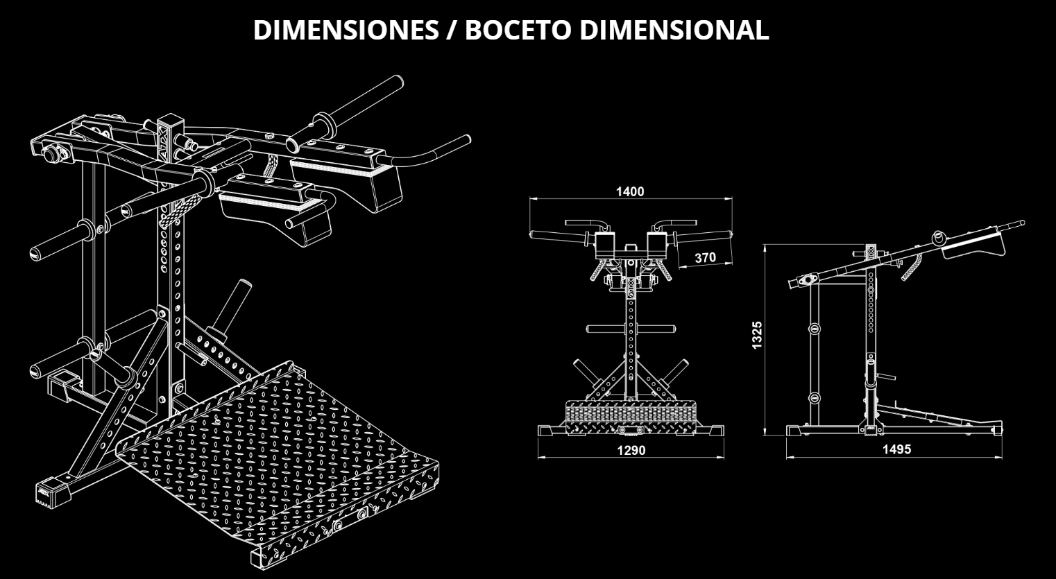 La excelente biomecánica asegura la máxima eficiencia del ejercicio de sentadillas. El reposapiés de 90 cm de ancho nos aporta un soporte extra ancho. El acolchado grueso y cómodo para los hombros tiene una forma ergonómica y minimiza la presión de contacto incluso con pesos pesados. El dispositivo también se puede utilizar como la llamada prensa vikinga. Las prensas de hombros y los encogimientos de hombros sentado también se pueden realizar perfectamente. ¡Un excelente dispositivo con un diseño absolutamente profesional, hecho de tubos cuadrados de paredes gruesas con un moderno diseño de patrón de orificios, resistente y versátil! - Productos de calidad diseñados en Alemania - - Certificado según EN 20957 I.II.IV Clase S - Características de la máquina de musculación para hacer sentadillas: