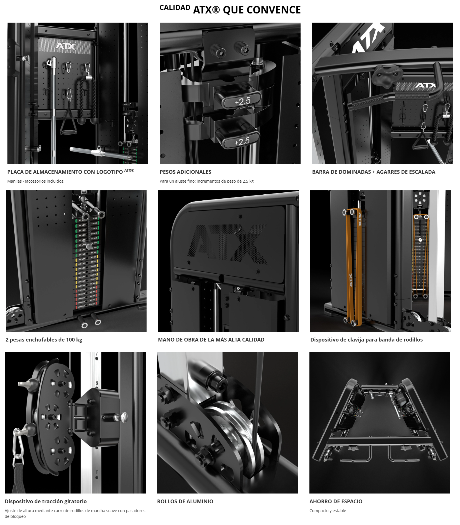 Esta estación profesional de poleas de cable de doble cara es ideal para gimnasios en casa, estudios de fitness y consultas de fisioterapia. Con su preciso sistema de poleas de cable, su robusta construcción de acero y sus dos columnas de pesas de 100 kg, además de un ajuste de peso adicional, este entrenador funcional ofrece la máxima versatilidad de entrenamiento y las condiciones perfectas para un entrenamiento de fuerza, estabilidad y rehabilitación efectivos.