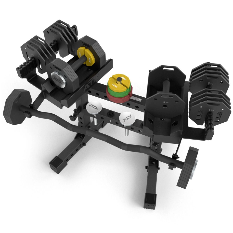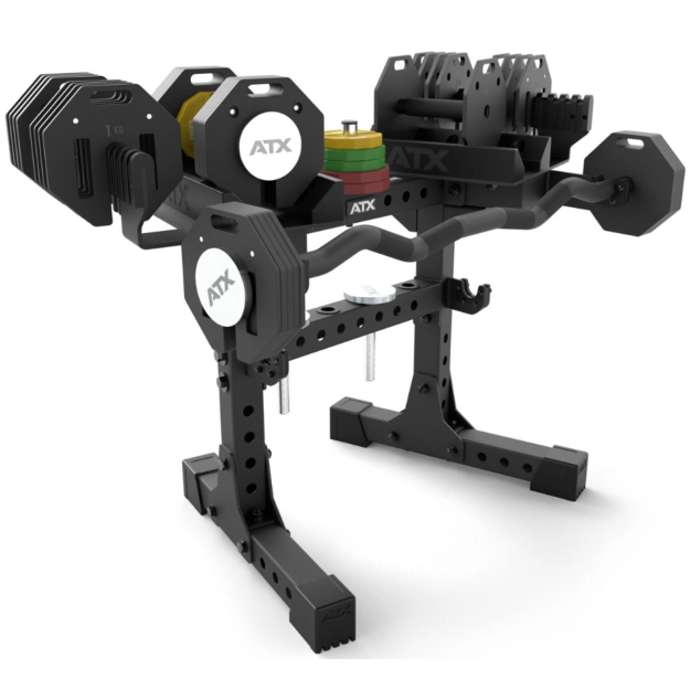 ATX® Octa-Dumbbells-Set XL - Juego de mancuernas 2 x 36kg + barra SZ + rack de almacenamiento