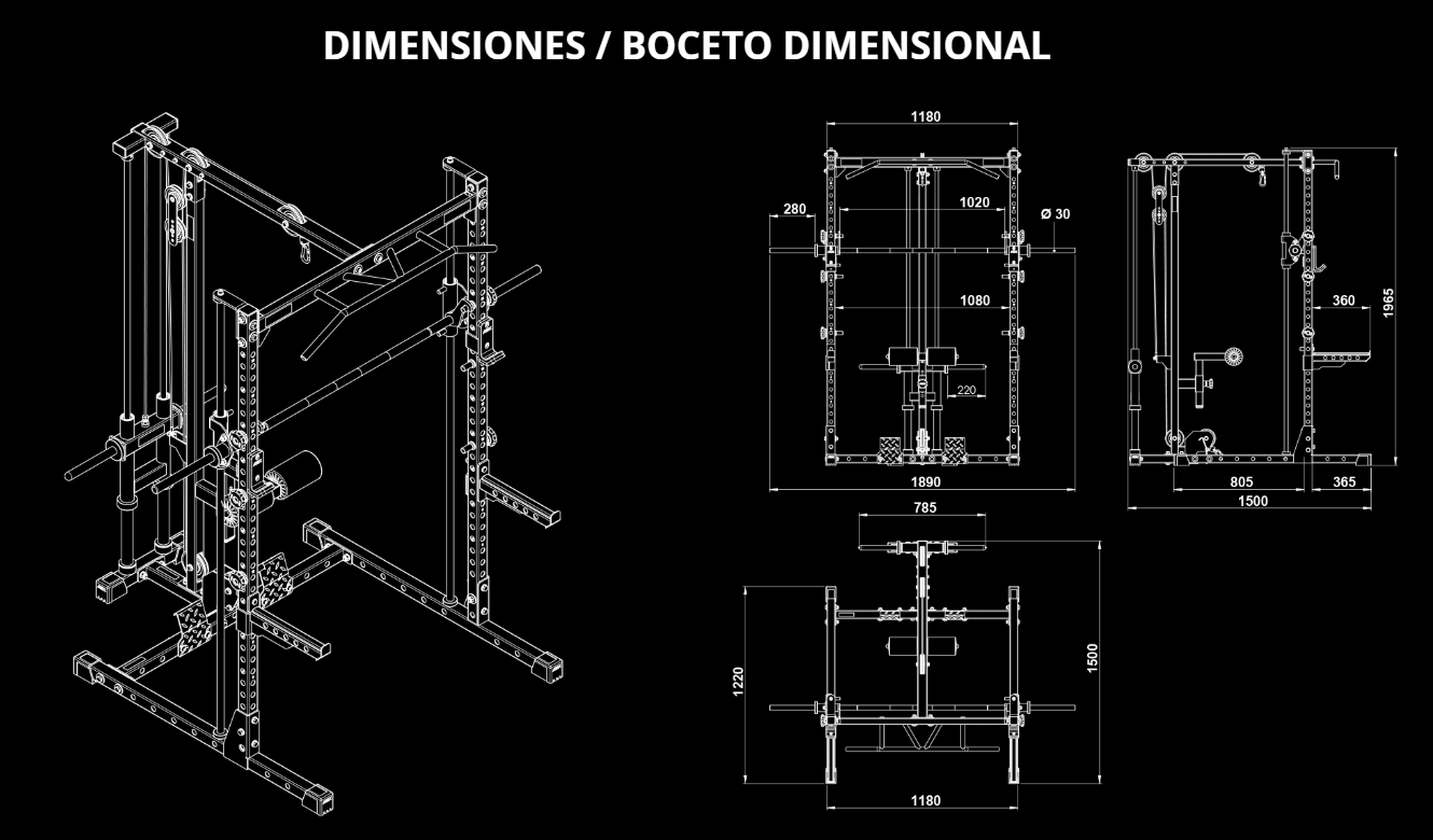 + Incluye estación de poleas, con soporte para discos de peso de 30 mm de diámetro.