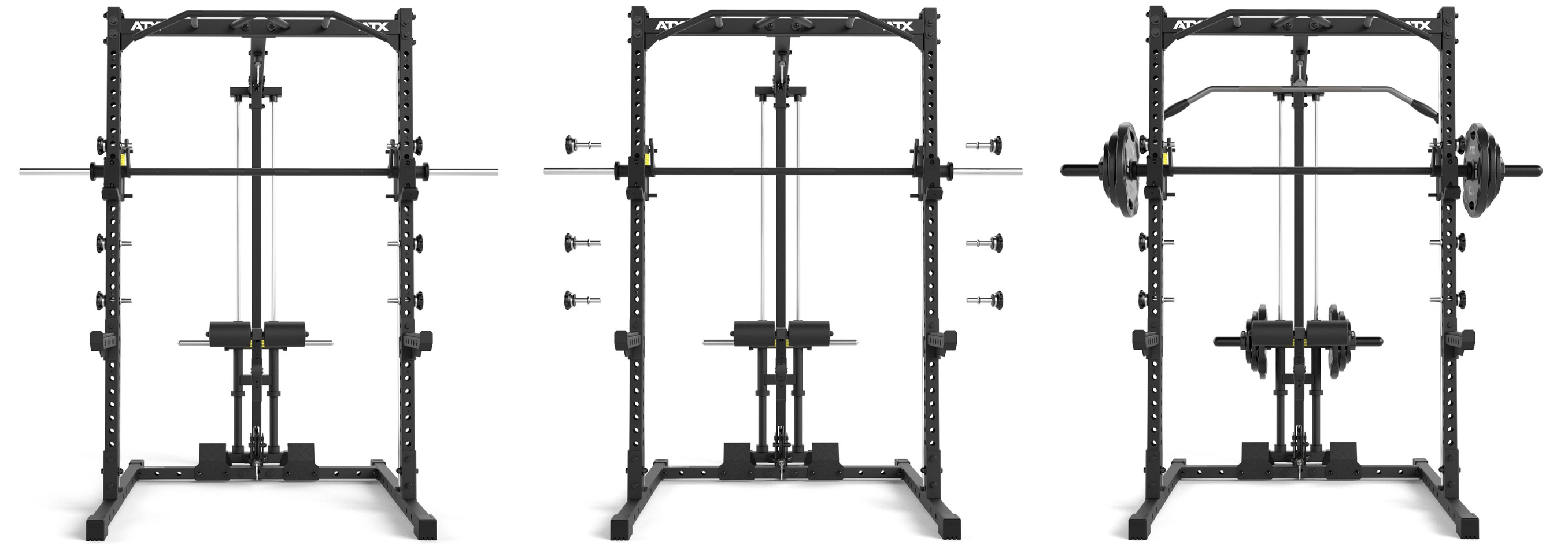 Esta estación de fuerza de primera calidad permite realizar prácticamente todos los ejercicios básicos esenciales del entrenamiento de fuerza, desde dominadas, sentadillas, press de banca y press de hombros, ya sea en el rack de barra o en la multipower con guía lineal. La estación de pulldown dorsal permite realizar todos los ejercicios de pull relevantes tanto desde arriba como desde abajo, sin necesidad de ajustes.