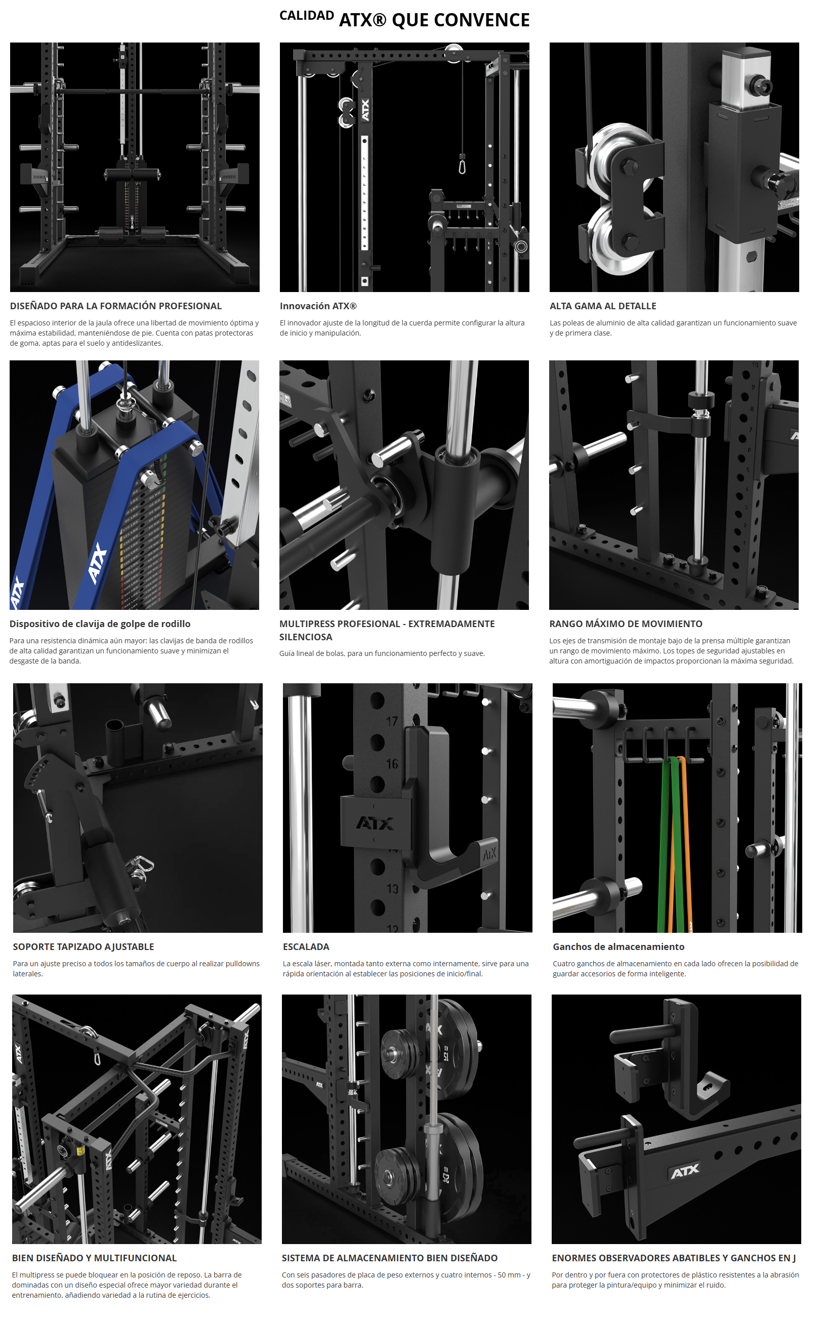 Características de la estación completa ATX® - Multipower serie 780 con estación de poleas - carga con discos de peso: