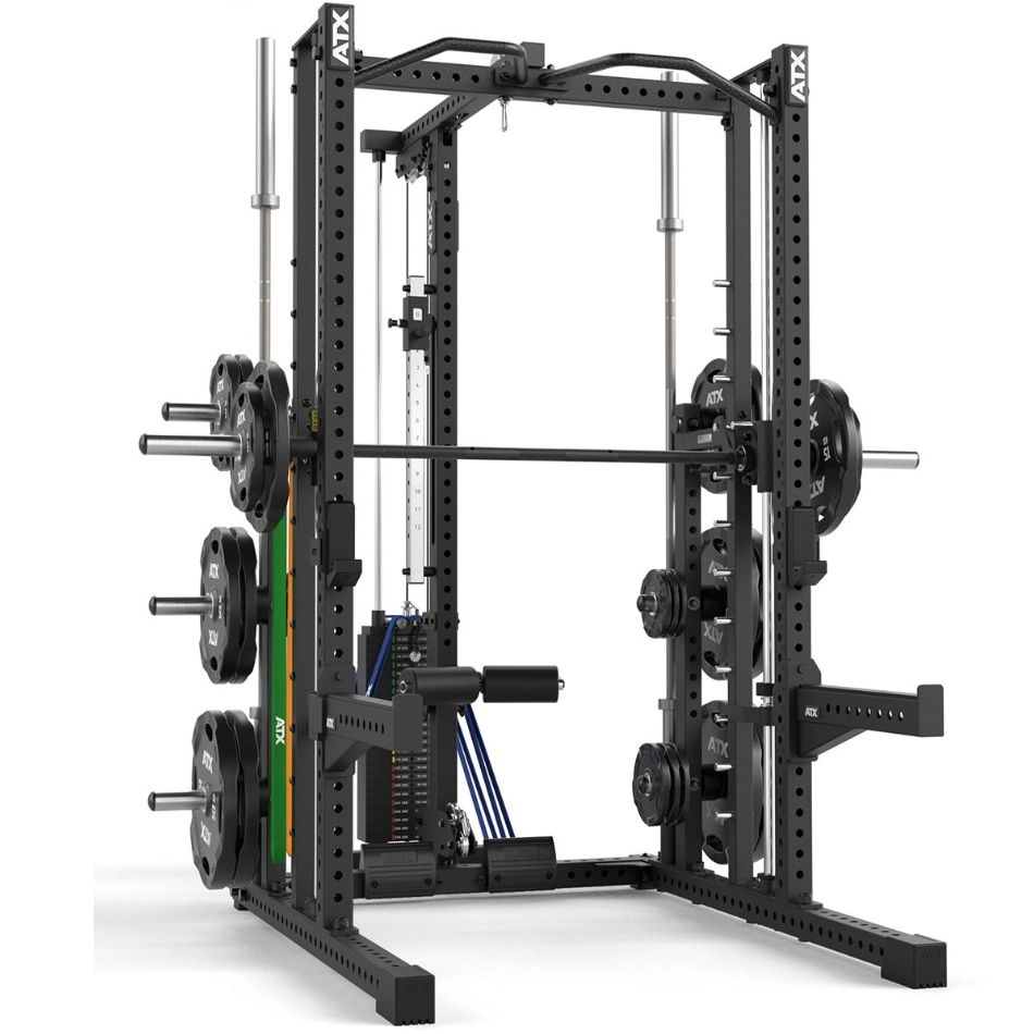 MULTIPRENSA PROFESIONAL ATX® MPX-780 CON ESTACIÓN DE POLEAS - CARGA CON DISCOS DE PESO Ø 50 mm ¡EQUIPADA PARA ENTRENAMIENTO CON PESAS GUIADO Y LIBRE!